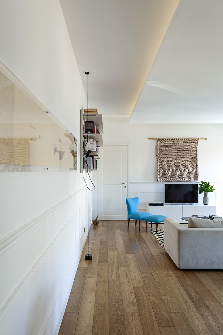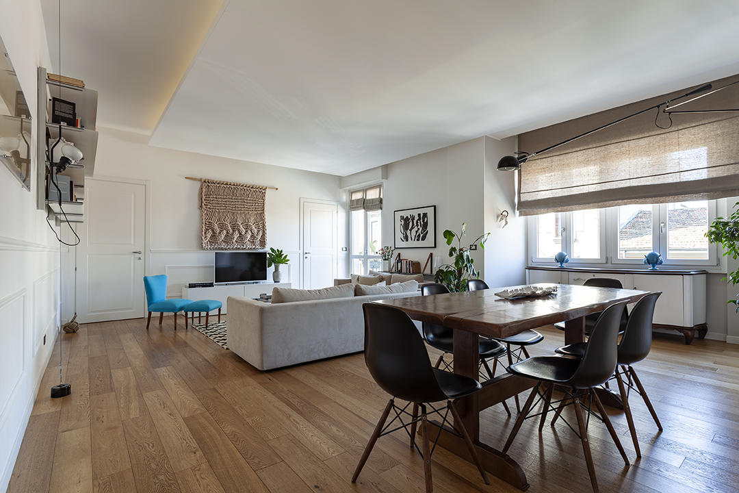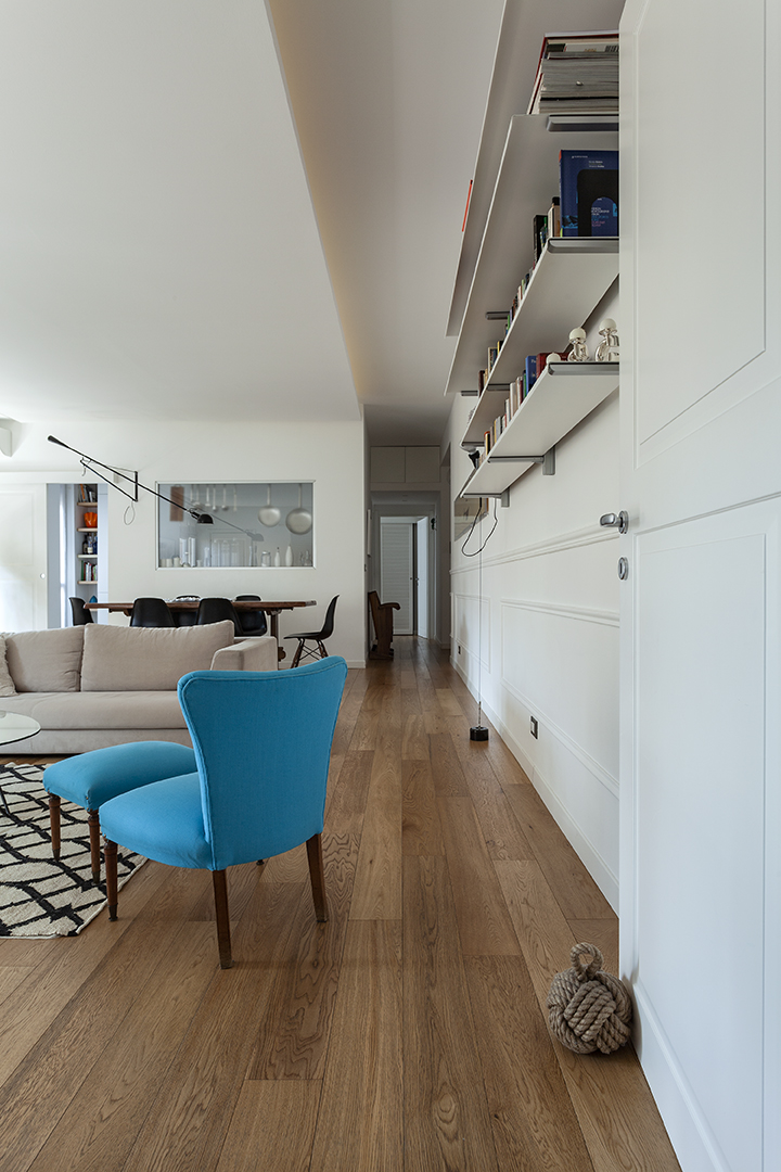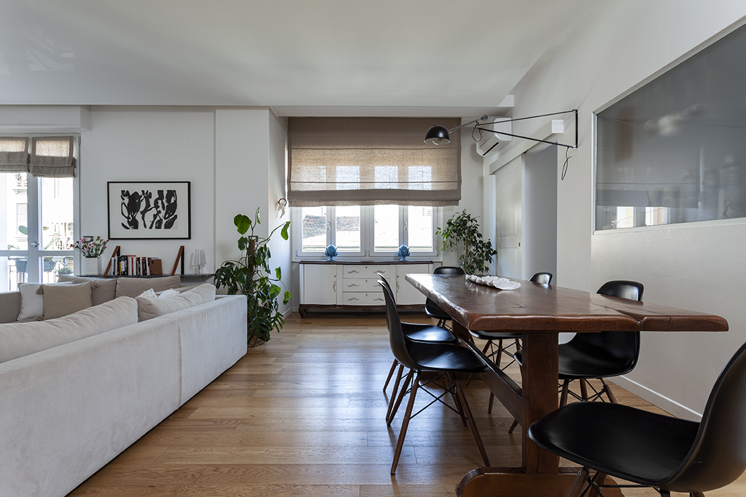 Una giovane famiglia ci ha chiesto un luogo dove in cui poter abitare la contemporaneità di una città come Milano, senza dimenticare la luce, il sole, la vitalità dei loro paesi natali. Su uno sfondo chiaro e lucente, sono stati calibrati accenti eleganti, arredi vintage, classici del design e manufatti artigianali. Lo spazio, merce preziosa e rara nell’urbanità metropolitana,